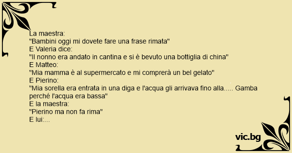 "Bambini oggi mi dovete fare una frase rimata"