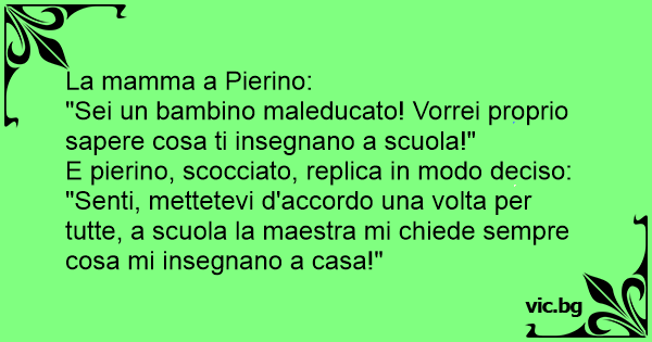 "Senti, mettetevi d'accordo una volta per tutte, a scuola la maestra mi chiede sempre cosa mi insegnano a casa!"