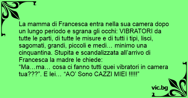 “Ma…ma… cosa ci fanno tutti quei vibratori in camera tua???”. E lei… “AO’ Sono САZZI MIEI !!!!!”