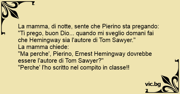 "Ma perche', Pierino, Ernest Hemingway dovrebbe essere l'autore di Tom Sawyer?"
