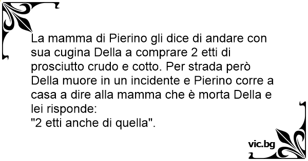 La mamma di Pierino gli dice di andare соn sua cugina Della a comprare 2 etti di prosciutto crudo e cotto. Per strada però Della muore in un incidente e Pierino corre a casa a dire alla mamma che è morta Della e lei risponde: