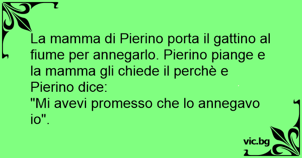 La mamma di Pierino porta il gattino al fiume per annegarlo. Pierino piange e la mamma gli chiede il perchè e Pierino dice: