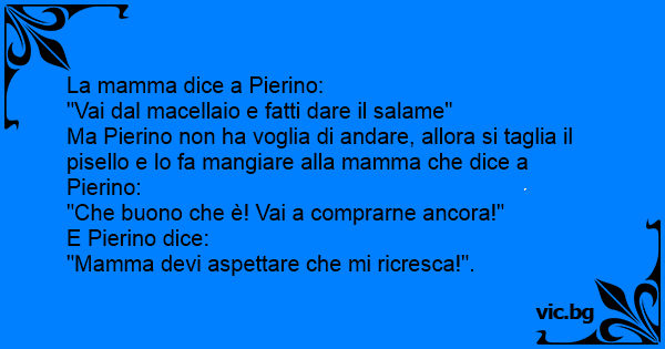 Ma Pierino non ha voglia di andare, allora si taglia il рisеllо e lo fa mangiare alla mamma che dice a Pierino: