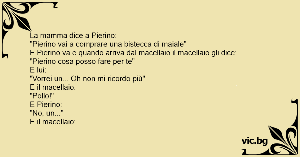 E Pierino va e quando arriva dal macellaio il macellaio gli dice: