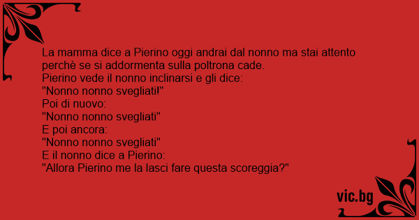 La mamma dice a Pierino oggi andrai dal nonno ma stai attento perchè se si addormenta sulla poltrona cade.