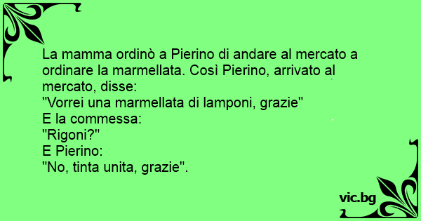 La mamma ordinò a Pierino di andare al mercato a ordinare la marmellata. Così Pierino, arrivato al mercato, disse: