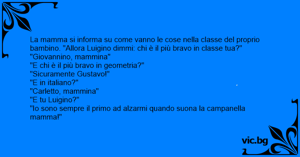 La mamma si informa su come vanno le cose nella classe del proprio bambino. "Allora Luigino dimmi: chi è il più bravo in classe tua?"