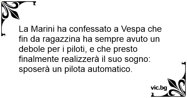 La Marini ha confessato a Vespa che fin da ragazzina ha sempre avuto un debole per i piloti, e che presto finalmente realizzerà il suo sogno: sposerà un pilota automatico.