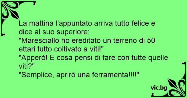 La mattina l'appuntato arriva tutto felice e dice al suo superiore: