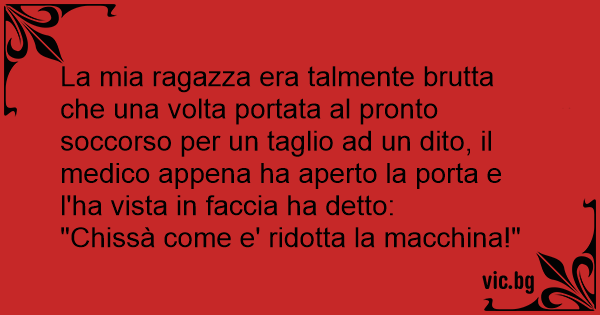 La mia ragazza era talmente brutta che una volta portata al pronto soccorso per un taglio ad un dito, il medico appena ha aperto la porta e l'ha vista in faccia ha detto: