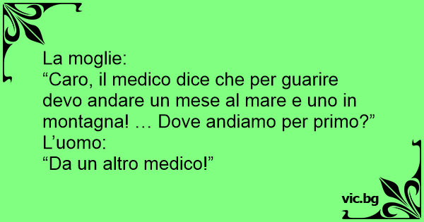 “Caro, il medico dice che per guarire devo andare un mese al mare e uno in montagna! … Dove andiamo per primo?”
