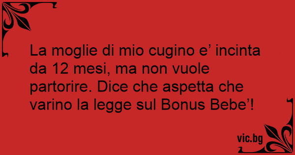 La moglie di mio cugino e’ incinta da 12 mesi, ma non vuole partorire. Dice che aspetta che varino la legge sul Bonus Bebe’!