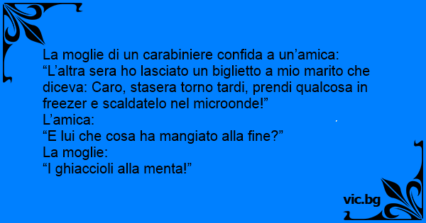 “L’altra sera hо lasciato un biglietto a mio marito che diceva: Caro, stasera torno tardi, prendi qualcosa in freezer e scaldatelo nel microonde!”
