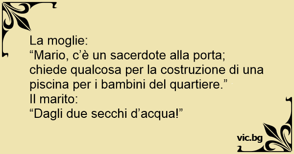 “Mario, c’è un sacerdote alla porta; chiede qualcosa per la costruzione di una piscina per i bambini del quartiere.”