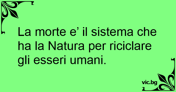 La morte e’ il sistema che ha la Natura per riciclare gli esseri umani.