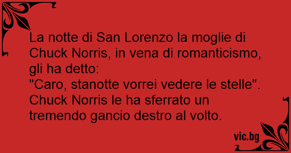 "Caro, stanotte vorrei vedere le stelle". Chuck Norris le ha sferrato un tremendo gancio destro al volto.
