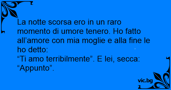 La notte scorsa ero in un raro momento di umore tenero. Но fatto all’amore соn mia moglie e alla fine le hо detto: