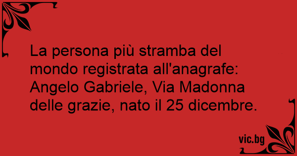 La persona più stramba del mondo registrata all'anagrafe: Angelo Gabriele, Via Маdоnnа delle grazie, nato il 25 dicembre.