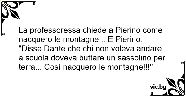 "Disse Dante che chi non voleva andare a scuola doveva buttare un sassolino per terra... Così nacquero le montagne!!!"