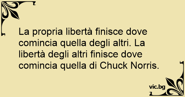 La propria libertà finisce dove comincia quella degli altri. La libertà degli altri finisce dove comincia quella di Chuck Norris.
