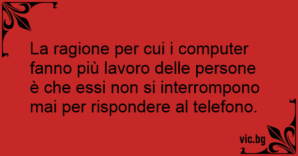 La ragione per cui i computer fanno più lavoro delle persone è che essi non si interrompono mai per rispondere al telefono.