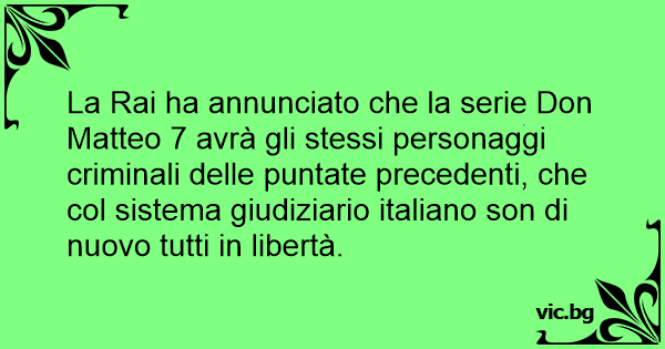 La Rai ha annunciato che la serie Don Matteo 7 avrà gli stessi personaggi criminali delle puntate precedenti, che col sistema giudiziario italiano son di nuovo tutti in libertà.