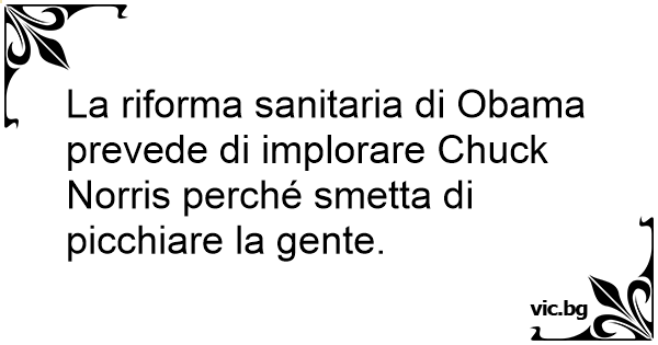 La riforma sanitaria di Obama prevede di implorare Chuck Norris perché smetta di picchiare la gente.