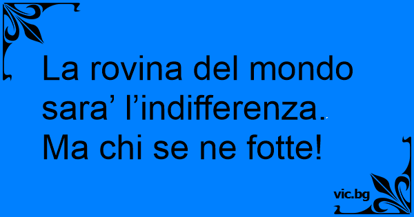 La rovina del mondo sara’ l’indifferenza. Ma chi se ne fotte!