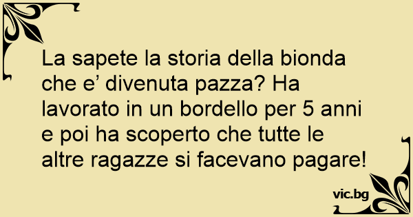 La sapete la storia della bionda che e’ divenuta pazza? Ha lavorato in un воrdеllо per 5 anni e poi ha scoperto che tutte le altre ragazze si facevano pagare!