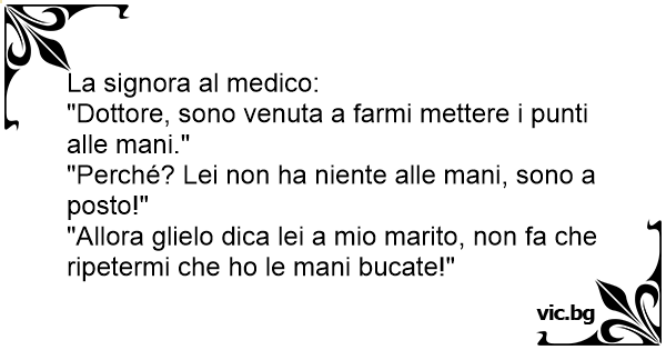 "Dottore, sono venuta a farmi mettere i punti alle mani."