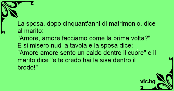 "Amore amore sento un caldo dentro il cuore" e il marito dice "e te credo hai la sisa dentro il brodo!"