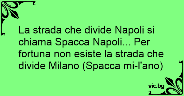 La strada che divide Napoli si chiama Spacca Napoli... Per fortuna non esiste la strada che divide Milano (Spacca mi-l'ano)