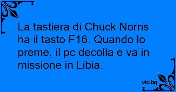 La tastiera di Chuck Norris ha il tasto F16. Quando lo preme, il pc decolla e va in missione in Libia.