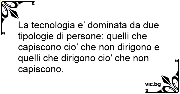 La tecnologia e’ dominata da due tipologie di persone: quelli che capiscono cio’ che non dirigono e quelli che dirigono cio’ che non capiscono.