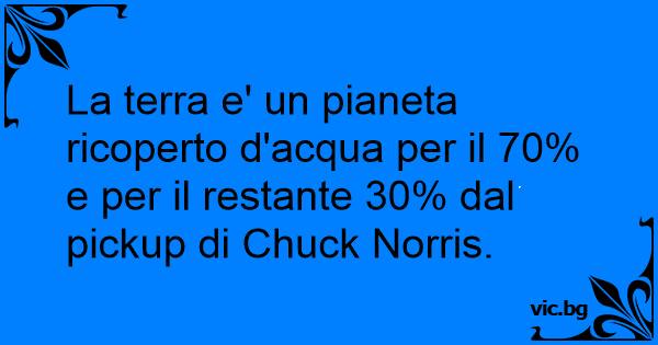 La terra e' un pianeta ricoperto d'acqua per il 70% e per il restante 30% dal pickup di Chuck Norris.