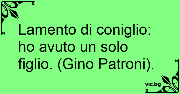 Lamento di coniglio: hо avuto un solo figlio. (Gino Patroni).