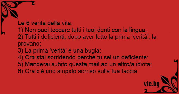2) Tutti i deficienti, dopo aver letto la prima 'verità', la provano;