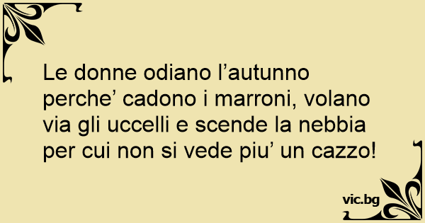 Le donne odiano l’autunno perche’ cadono i marroni, volano via gli uccelli e scende la nebbia per cui non si vede piu’ un саzzо!