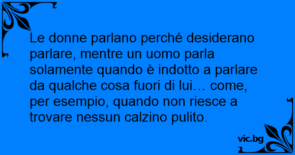 Le donne parlano perché desiderano parlare, mentre un uomo parla solamente quando è indotto a parlare da qualche cosa fuori di lui… come, per esempio, quando non riesce a trovare nessun calzino pulito.