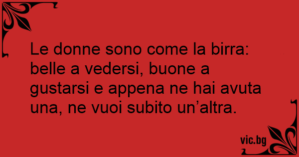 Le donne sono come la birra: belle a vedersi, buone a gustarsi e appena ne hai avuta una, ne vuoi subito un’altra.