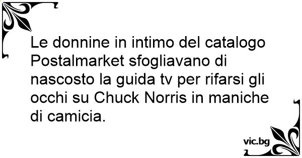 Le donnine in intimo del catalogo Postalmarket sfogliavano di nascosto la guida tv per rifarsi gli occhi su Chuck Norris in maniche di camicia.