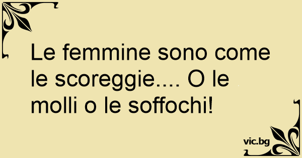 Le femmine sono come le scoreggie.... O le molli o le soffochi!