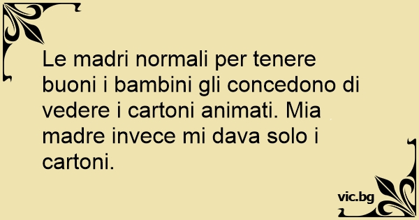 Le madri normali per tenere buoni i bambini gli concedono di vedere i cartoni animati. Mia madre invece mi dava solo i cartoni.