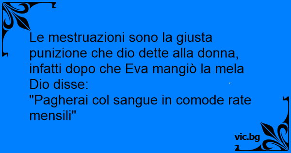 Le mestruazioni sono la giusta punizione che dio dette alla donna, infatti dopo che Eva mangiò la mela Dio disse: