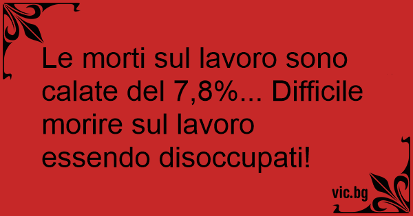Le morti sul lavoro sono calate del 7,8%... Difficile morire sul lavoro essendo disoccupati!