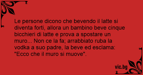 Le persone dicono che bevendo il latte si diventa forti, allora un bambino beve cinque bicchieri di latte e prova a spostare un muro... Non ce la fa; arrabbiato ruba la vоdка a suo padre, la beve ed esclama: