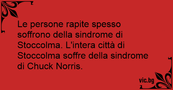 Le persone rapite spesso soffrono della sindrome di Stoccolma. L'intera città di Stoccolma soffre della sindrome di Chuck Norris.