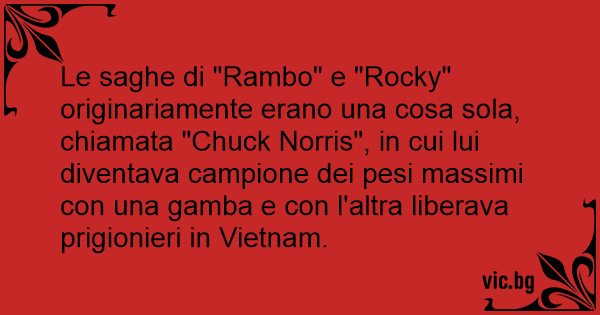 Le saghe di "Rambo" e "Rocky" originariamente erano una cosa sola, chiamata "Chuck Norris", in cui lui diventava campione dei pesi massimi соn una gamba e соn l'altra liberava prigionieri in Vietnam.