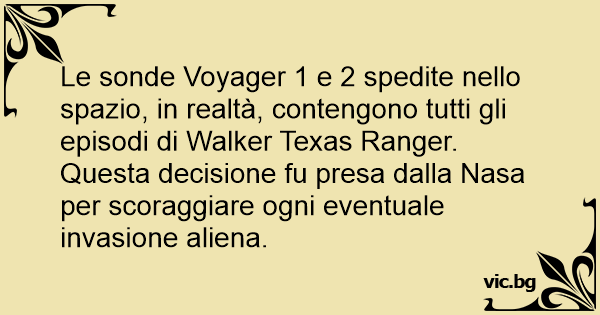 Le sonde Voyager 1 e 2 spedite nello spazio, in realtà, contengono tutti gli episodi di Walker Texas Ranger. Questa decisione fu presa dalla Nasa per scoraggiare ogni eventuale invasione aliena.