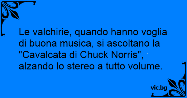 Le valchirie, quando hanno voglia di buona musica, si ascoltano la "Cavalcata di Chuck Norris", alzando lo stereo a tutto volume.
